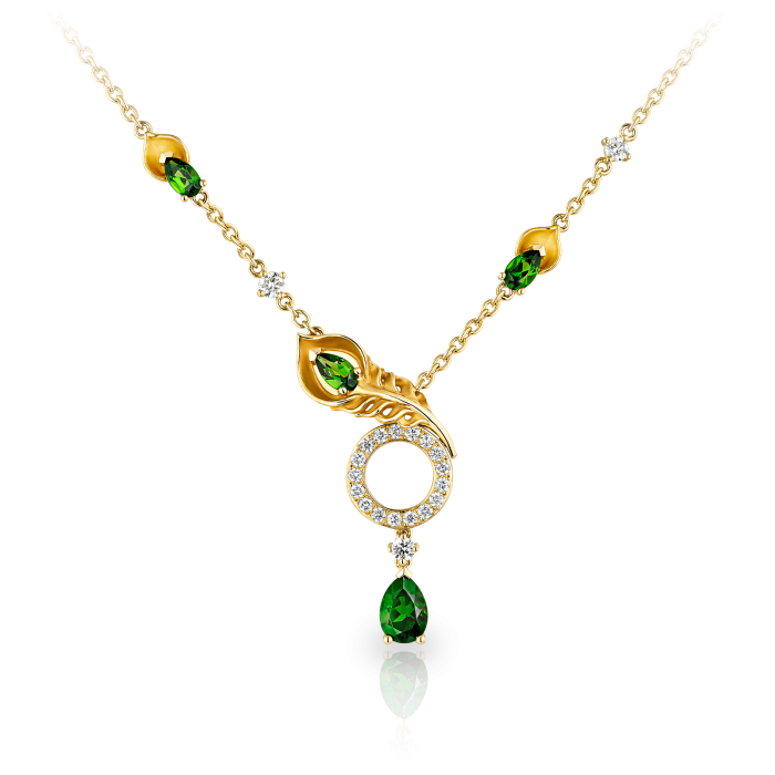 Origen Koleksiyonu'ndan 18 ayar sarı altın, göz kamaştırıcı elmaslar ve kromodioritler içeren ''Mistral'' Kolye'yi keşfedin. Ortalama 8,58 gram ağırlığında olan bu zarif parça, lüks ve zarafeti bir araya getirerek her durum için mükemmel bir aksesuar haline getiriyor.